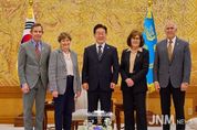 제이앤엠뉴스 | 이재명 대통령은 4월 2일 청와대에서 미국 상원의원 대표단을 만나 한미동맹과 한반도 정세, 그리고 중동 지역의 안보·경제적 영향에 대해 논의했다. 이날 접견에는 진 섀힌 상원 외교위원회 간사(민주, 뉴햄프셔), 존 커티스 상원의원(공화, 유타), 톰 틸리스 상원의원(공화, 노스캐롤라이나), 재키 로젠 상원의원(민주, 네바다)이 참석했다. 이재명 대통령은 한미동맹이 70여 년간 안보와 경제를 넘어 첨단기술 및 전략산업 등 다양한 영역에서 '미래형 포괄적 전략동맹'으로 발전해온 점을 높이 평가했다. 또한, 지난해 양국 정상 간 합의된 원자력의 평화적 이용, 핵추진잠수함, 조선 등 핵심 분야에서 실질적 협력이 이뤄질 수 있도록 미국 상원의 적극적 지지를 요청했다. 미국 상원의원 대표단은 최근 중동전쟁 등 국제정세의 불안정에도 불구하고 한미동맹에 대한 지지와 미국의 한반도 안보 공약이 변함없음을 강조했다. 대표단은 한국이 남북 간 군사적 긴장 완화와 상호 신뢰 회복을 위해 노력하는 점을 높이 평가하며, 한반도의 평화와 안정을 위해 미국 의회 차원에서 협력할 뜻을 밝혔다. 또한, 미국 내 조선 및 제조업 부흥을 위해 한국과의 전략적 협력이 중요하다는
