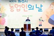 제이앤엠뉴스 | 파주시는 ‘제30회 농업인의 날’을 맞아 농업인들의 노고를 격려하고 자긍심을 고취하고자 지난 11일 시민회관 대공연장에서 농업인과 시민이 함께하는 기념행사를 개최했다고 밝혔다. 이날 행사에는 김경일 파주시장을 비롯해 박정 국회의원, 박대성 파주시의회 의장, 시의원, 이학필 농협중앙회 파주시지부장 등 유관기관 단체장, 김웅기 파주시농업인단체협의회장 및 농업인 등 350여 명이 참석했다. 행사는 파주시립예술단의 공연으로 막을 올렸으며, 김웅기 한국농촌지도자 파주시연합회장이 제30회 농업인의 날 유공 국무총리 표창을 파주시장으로부터 전수받았다. 이어 고품질 쌀 생산 부문 등 5개 분야에서 선발된 농어민대상 수상자 5명과 파주시 농업 발전에 기여한 우수농업인, 유관기관 관계자, 읍면지역 공무원 등 총 50명 대한 시상식이 진행됐다. 김경일 파주시장은 “고물가, 이상기후, 농촌 고령화 등 어려운 여건 속에서도 안전한 먹거리를 위해 파주시 농업을 지켜온 농업인 여러분께 깊은 감사와 존경의 마음을 전한다”라며 “앞으로도 농업인의 안정적 소득과 지속 가능한 농업 발전을 위해 다양한 지원 정책 마련에 최선을 다