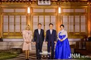 제이앤엠뉴스 | 마크롱 프랑스 대통령과 부인 브리지트 여사가 4월 2일 오후 서울공항에 도착해 공식 환영을 받았다. 이들은 보훈부 장관 등 관계자들의 영접을 받은 뒤 용산 전쟁기념관을 찾아 프랑스 한국전 참전기념비에 헌화했다. 양국 정상 부부는 이날 저녁, 4월 3일 공식일정에 앞서 친교만찬을 함께했다. 이번 마크롱 대통령의 방한은 2015년 올랑드 대통령 이후 11년 만에 성사된 프랑스 대통령의 국빈 방문이며, 이재명 대통령과는 G7, G20 정상회의에 이어 세 번째 만남이다. 또한 2017년 마크롱 대통령 취임 이후 처음으로 한국을 찾은 자리이기도 하다. 상춘재에서 진행된 만찬은 한식과 프랑스 요리를 결합한 메뉴로 구성됐다. 손종원 셰프가 직접 메인 요리를 서빙했으며, 6가지 디쉬에는 양국의 우정과 협력을 상징하는 부제가 각각 붙었다. 만찬에는 프랑스를 위해 화이트와 레드 와인 각 1종, 전통주 1종이 곁들여졌다. 행사 후반에는 박다울 거문고 연주가가 전통과 현대를 아우르는 공연을 선보였다. 그는 유네스코 세계문화유산인 창덕궁 후원에서 영감을 받은 ‘비밀의 정원(Secret Garden)’과 ‘거문장난감(Geomun-toy)’을 연주했다. 이재명 대통령