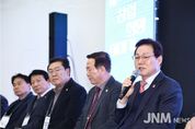 제이앤엠뉴스 | 전북특별자치도가 9일 도청에서 새만금개발청, 한국전력공사, 한국수력원자력㈜와 함께 '새만금 수상태양광(1단계) 발전사업'의 적기 구축을 위한 상호 협력 업무협약(MOU)을 체결했다. 협약식에는 김관영 전북자치도지사와 김성환 기후에너지환경부 장관, 안호영 기후에너지환경노동위원회 위원장, 김의겸 새만금개발청장, 김동철 한국전력공사 사장, 전대욱 한국수력원자력㈜ 사장 직무대행이 참석했다. 새만금 수상태양광 1단계 사업은 약 13.5㎢ 수역에 1.2GW 규모의 태양광 발전시설을 설치하는 총사업비 3조 원 규모의 대형 프로젝트다. 완공 시 연간 약 1,700GWh의 친환경 전력을 생산할 수 있으며, 이는 약 35만 가구가 1년간 사용할 수 있는 전력량에 해당한다. 이번 협약은 새만금 지역의 대규모 재생에너지 사업인 수상태양광(1단계) 발전사업을 차질 없이 추진하고, 조속한 계통 연계를 통해 새만금의 풍부한 재생에너지를 RE100 산업단지에 안정적으로 공급하기 위한 전력설비를 조기에 구축하는 데 목적이 있다. 협력을 통해 한전의 전력 인프라가 조기에 구축되면, 새만금 재생에너지의 적기 연계가