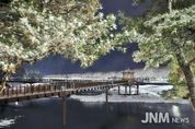 제이앤엠뉴스 | 4일 저녁 괴산군에 눈이 내려 겨울밤의 정취가 짙게 드러났다. 소나무 가지마다 쌓인 눈이 꽃처럼 피어난 가운데 사진 속 에코브릿지는 하천과 정자를 잇는 선을 은빛으로 그리며 설경의 중심에 섰다. 조명이 눈 위에서 퍼져 나가며 다리의 윤곽을 더욱 선명하게 밝혔고 고요한 물 위로 번진 빛이 겨울밤의 분위기를 깊게 만들었다. 군은 동진천·성황천 종합관광활성화 사업의 하나로 에코브릿지를 조성하고 있다. 12월 준공이 예정돼 있다. 완공 후에는 하천을 따라 이어지는 보행 다리와 정자, 경관 조명이 결합돼 새로운 야간 명소로 자리 잡을 전망이다. [뉴스출처 : 충청북도 괴산군]