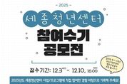제이앤엠뉴스 | 세종일자리경제진흥원이 운영하는 세종청년센터가 센터 사업 및 프로그램 참여자들의 경험과 이야기를 담기 위한 ‘2025년 세종청년센터 참여 수기 공모전’을 개최한다. 이번 공모전은 센터 사업 및 프로그램에 참여한 청년들의 다양한 사례를 수집하고, 현장에서 느낀 진솔한 경험담을 통해 청년들의 참여 의미를 더욱 널리 알리기 위해 마련됐다. 공모 분야는 총 3개 유형이다. ▲유형1은 세종청년센터 사업 및 프로그램 참여 청년, ▲유형2는 청년도전지원사업 참여 청년, ▲유형3은 청년성장프로젝트 참여 청년을 대상으로 하며, 1인당 1편만 응모할 수 있다. 참여 방식은 자유주제로, 2025년도 센터 사업 및 프로그램 참여 경험을 바탕으로 A4 1~4매(500자 이상)의 한글 파일 형식의 수기를 작성해 제출하면 된다. 공모 접수는 10일 16시까지이며, 세종청년센터 홈페이지에서 신청서를 내려받아 수기와 함께 제출하면 된다. 센터 사업에 참여한 세종시 청년이라면 누구나 지원할 수 있다. 참여자 모두에게는 세종청년마일리지 ‘세마일’* 20,000점이 적립되며, 부문별 ▲최우수 1명 ▲우수 1